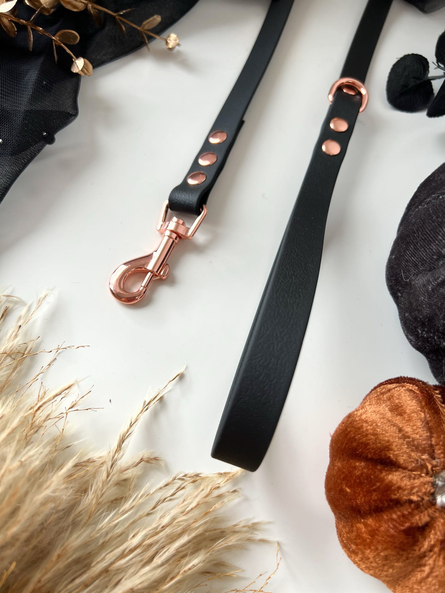 Our waterproof dog leads are made with a strong durable pvc coated 15mm wide polyester webbing and finished off with beautiful metal hardwear making them the perfect practical yet stylish addition to any pups wardrobe.